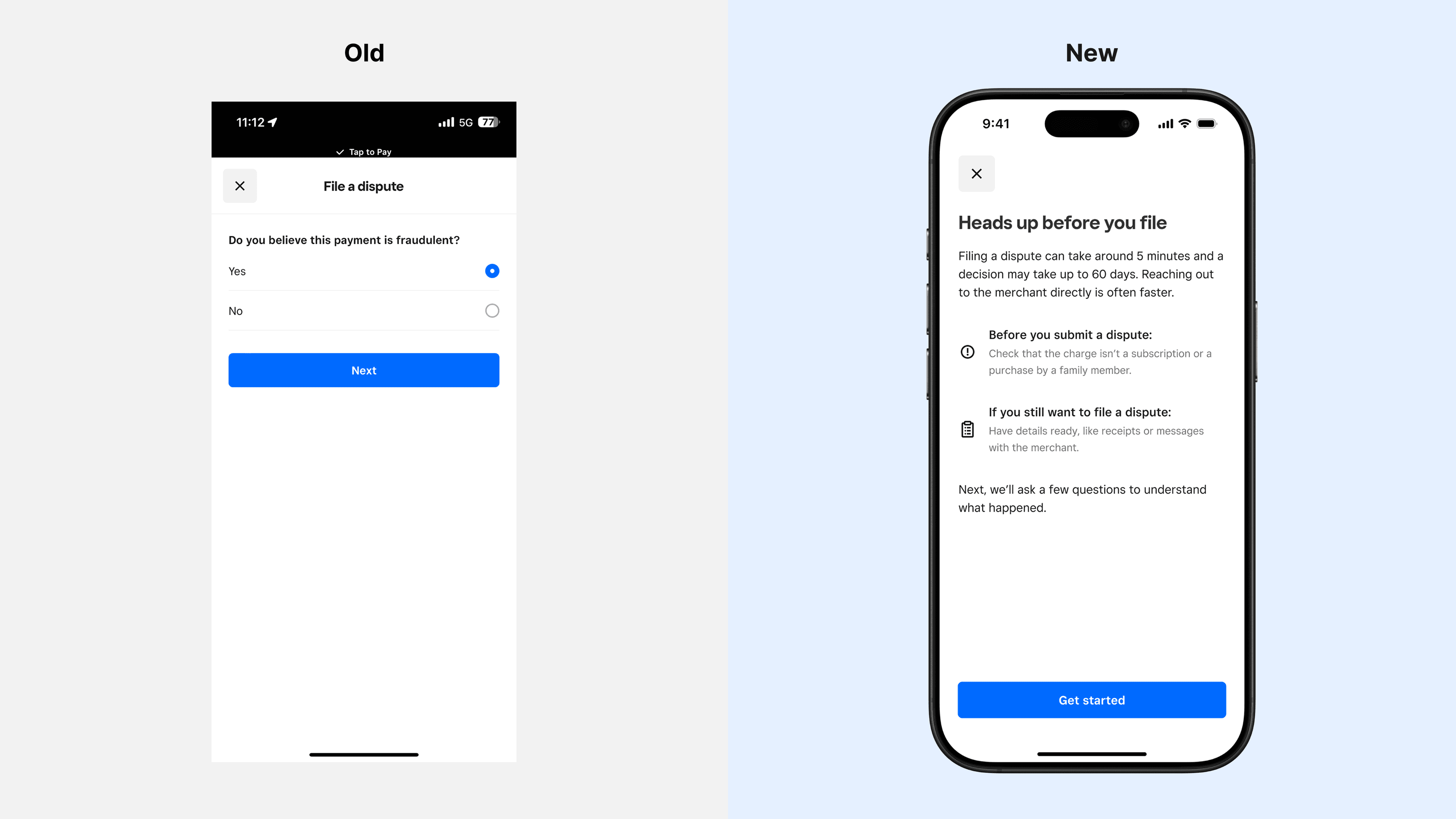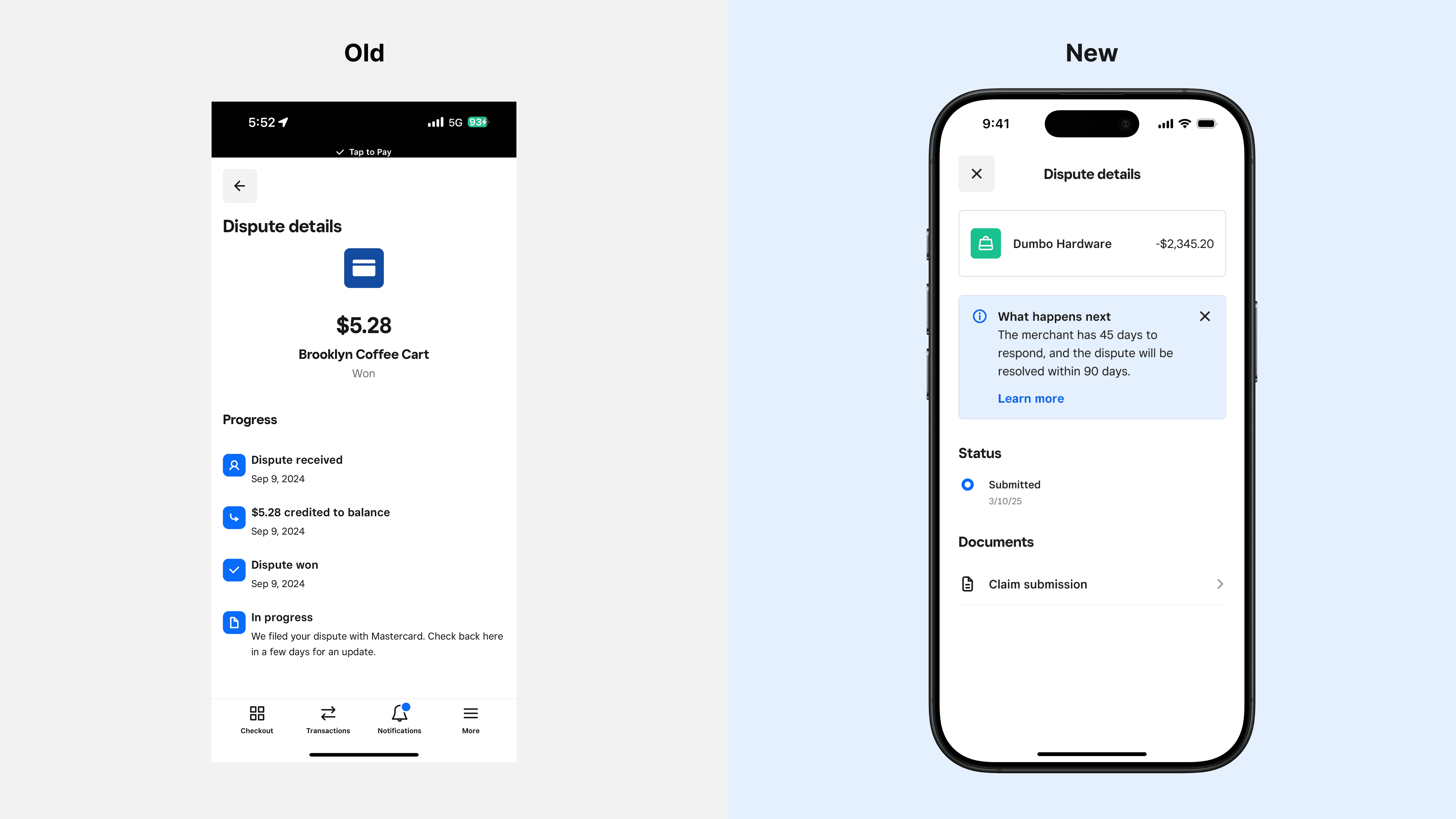 I was the lead product designer on this project and partnered closely with a content designer to redesign the disputes experience to help drive down Seller churn and reduce the amount of follow up questions Square needs to ask. We also collaborated closely with our product, engineering, policy, and operation counterparts to help make this a reality.